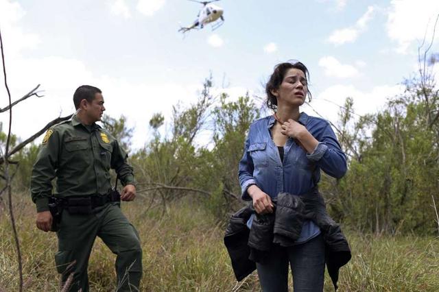 U.S. Border Patrol agent Marcelino Medina detains Veronica Reyes, 26, of Veracruz, Mexico, near the Anzalduas International Bridge in Mission, Texas, Thursday, May 10, 2018. Reyes was with a group of five ... more