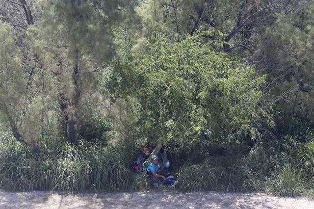 A group of immigrants, including children, take shelter under the trees minutes after smugglers rafted them across the Rio Grande into the U.S. at a site called ìEl Rincon,î in Hidalgo County, Texas, Friday, May 11, 2018. less