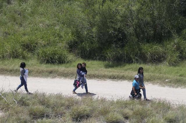 A group of immigrants, including children, walk along a road minutes after smugglers rafted them across the Rio Grande into the U.S. at a site called ìEl Rincon,î in Hidalgo County, Texas, Friday, May 11, ... more