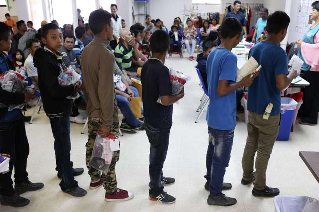 Upon arriving, Central American children line up to eat as their parents seek help at the Catholic Charities of the Rio Grande Valley's Humanitarian Respite Center in McAllen, Texas, Wednesday, May 9, 2018.