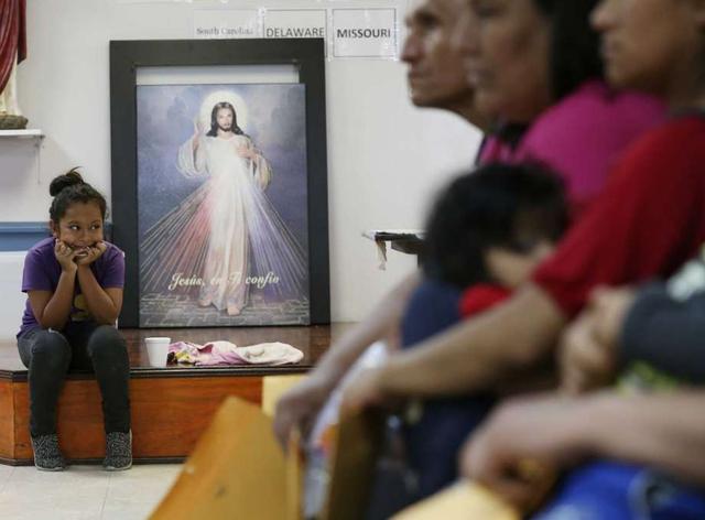 Emelin Melissa Perdomo Romero, 11, waits as her mother gets help at the Catholic Charities of the Rio Grande Valley's Humanitarian Respite Center in McAllen, Texas, Wednesday, May 9, 2018. They are from El Salvador and were just released from an immigration detention center and were headed to North Carolina. less