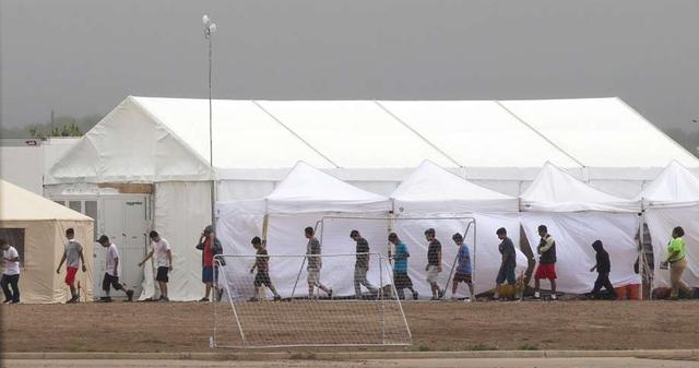 Immigrant kids walk through the C.B.P. facility where the newly formed "tent city" is located, Saturday, June 16, 2018, in Tornillo. Photo by Ivan Pierre Aguirre/ for the San Antonio Express-News
