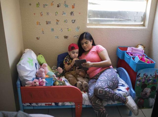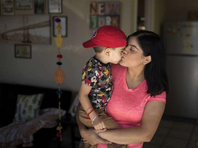 Mariana Ibarra and her son Max at their home, Saturday, June 23, 2018, in El Paso, Texas. Ibarra was separated from her son for 8 months while she was at an ICE processing center. Photo by Ivan Pierre Aguirre/San Antonio Express-News less