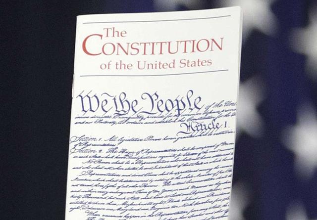 FILE - In this March 23, 2016 photo, the Constitution is held by a member of Congress on Capitol Hill in Washington. President Donald Trump says he wants to order the end of the constitutional right to ... more