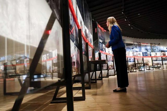A staff member browses a display during a limited media availability at the National Veterans Museum and Memorial, Monday, Oct. 15, 2018, in Columbus, Ohio. A sweeping new museum in America's heartland honors ... more