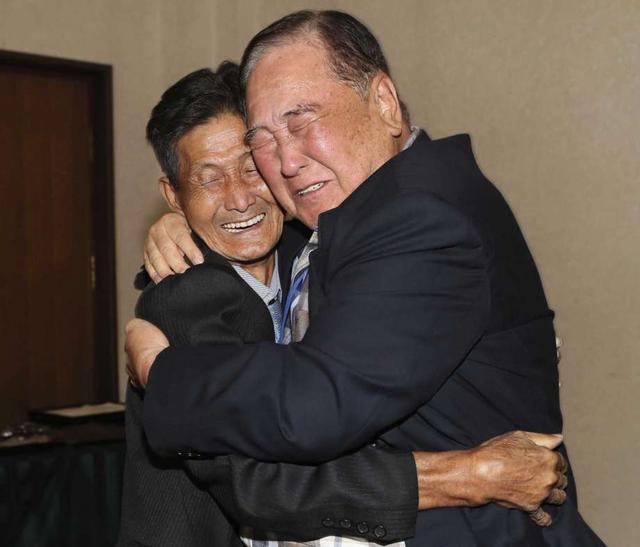 The first meetings took place at about 3 p.m. Ham's heart trembled as he walked with his wife and daughter toward the banquet hall where the North Korean relatives were waiting at white tables. As Ham approached a table marked with the number 90, a slim, deeply wrinkled man in a suit and tie sprung from his seat. The brothers embraced tightly, smiling widely, tears streaming down their faces.