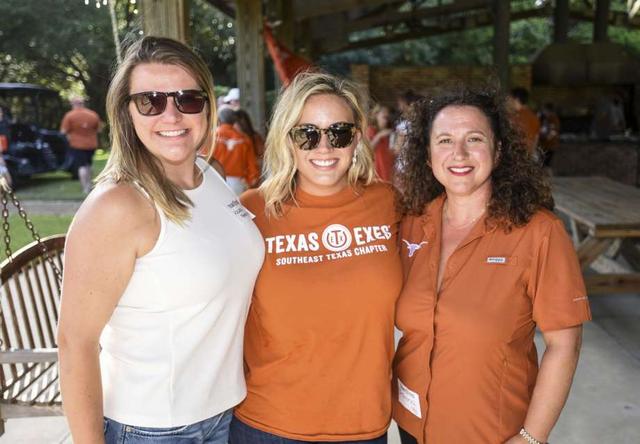 Deborah Drago, Linsi Walker and Kellsey Fairchild pose for a photo during Texas Exes Southeast Chapter meeting. Alumni of University of Texas at Austin were also sending off new students. Photo taken on Wednesday, 8/7/19. Ryan Welch/The Enterprise