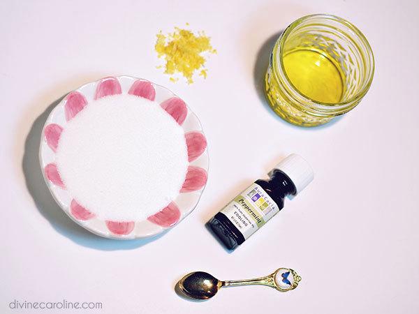 - 1/2 cup sugar: Sugar naturally draws moisture to your skin and keeps skin hydrated. It is also a natural exfoliant that permeates the cells, giving you fresher and younger-looking skin.