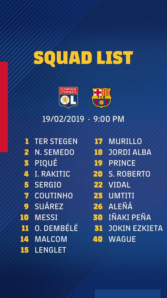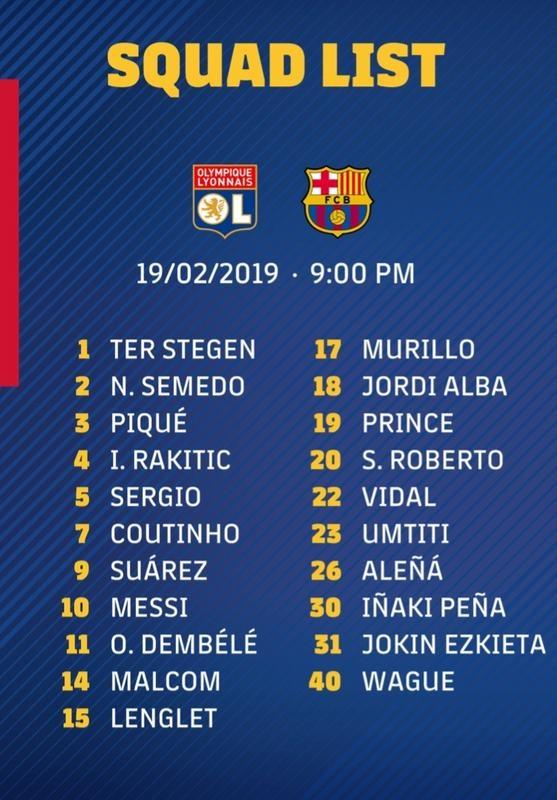 Il Barcellona ha reso nota la lista dei convocati che partiranno per Lione per la sfida di Champions League contro il Lione. Umtiti torna tra i convocati dopo l'infortunio.