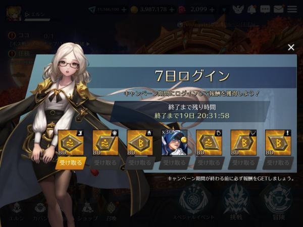 期間中に7日ログインすることでログイン日数に応じたアイテムを獲得することができます。