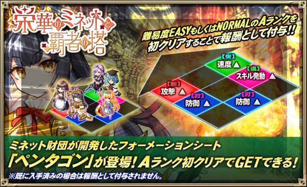 さらに、各階層に登場する番人を倒すと「絢爛!ミネオリアガチャ」に挑戦できる「ミネット勲章」や「イベント限定HP回復薬」が獲得できるほか、フォーメーション「ペンタゴン★1」も入手できます。