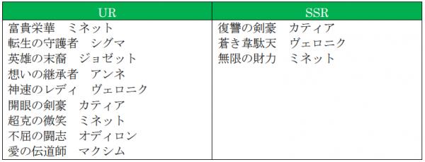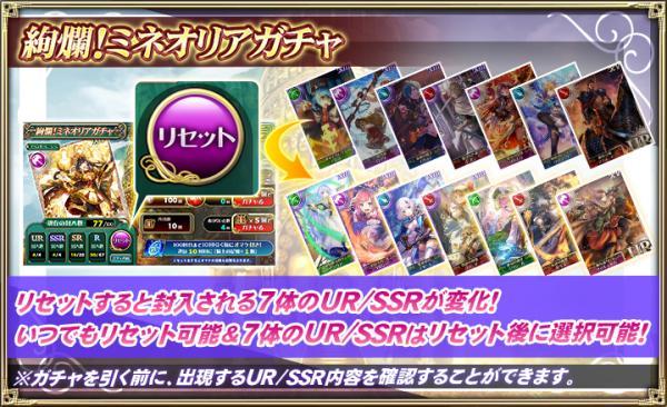 なお、一度本ガチャから出現したユニットは、リセットを行うまで出現せず、ガチャを引くほど封入されたUR/SSRユニットが引きやすくなります。