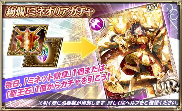 また、15UR「富貴栄華 ミネット(CV:石原夏織)」が登場する「絢爛!ミネオリアガチャ」も開催中です。