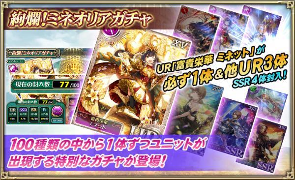 12月2日(月)メンテナンス後より、「絢爛!ミネオリアガチャ」が開催中です。