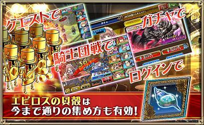 こちらは、「オルサガ」独自のポーカーゲームで、クエストやイベントページログイン、ガチャ、騎士団戦参加など、一定の条件を満たすと入手できる「エピロスの貝殻」を使用することでプレイができます。