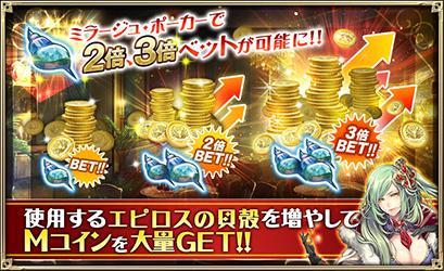 また、“ミラージュ・ポーカー”内で「役」を成立させると「Mコイン」を手に入れることができ、「Mコイン」の枚数に応じて、15URユニット「ジャック」などの豪華景品と交換が可能です。