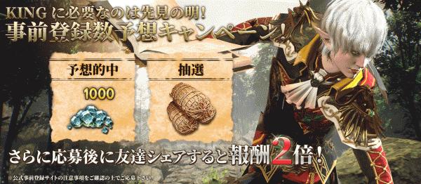 事前登録数予想キャンペーン「KING に必要なのは先見の明!」が実施中です。