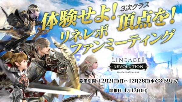 『リネージュ2 レボリューション』にて、2019年1月13日(日)より、ファンイベント「リネレボファンミーティング ~体験せよ!頂点(3次クラス)を!~」が開催予定です。