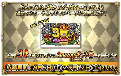 9月5日(土)より、「祝30周年!初代Sa・Gaシリーズコラボ開催記念キャンペーン」が実施中です。