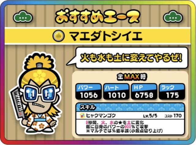 『戦国アクションパズル DJノブナガ』にて、2018年8月16日(木)より、土ピックアップ降臨フェスガチャが開催予定です。本ガチャは、新土属性ブショー「マエダトシイエ」と「オマツ」が獲得できます。