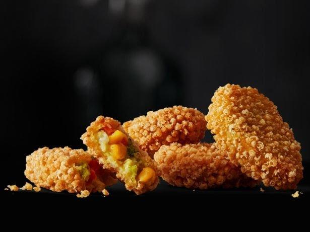 “The new chicken-free McNuggets are made with a mashed potato base, which is mixed with chickpeas, onions, carrots and corn. They’re coated in breadcrumbs, then fried until crispy. The vegan option is the latest in a series of vegetarian-friendly releases from the golden arches but, for now, they’re only available in Norway.”