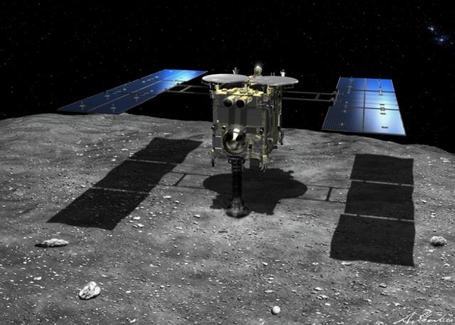 Art depicting Hayabusa2 landing on Ryugu. (Image Credit: JAXA)