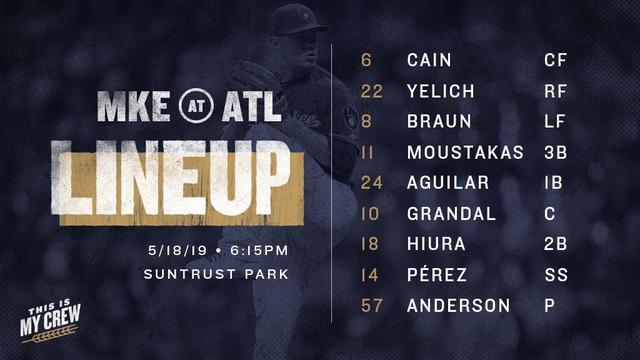 Here’s tonight’s lineup as the Brewers take on the Braves in Game 2 of the series. #ThisIsMyCrew