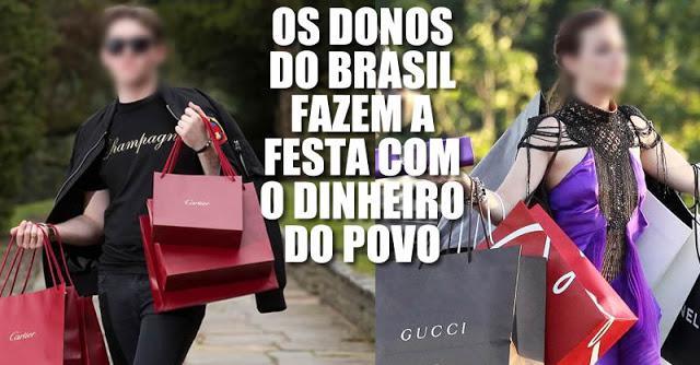 De tudo que a União arrecada, estima-se que consegue devolver apenas 7% ao cidadão, sob a forma de investimentos em infraestrutura, saúde, educação, segurança pública e outros serviços notadamente precários. A maior parte do dinheiro do povo é consumida por um grupo seleto de privilegiados. É claro que se não fosse essa gente, as joalherias, os restaurantes e hotéis de luxo, as construtoras de mansões e os vendedores de carros importados morreriam de fome. No entender dessa elite, que tem que morrer de fome é o povo. Quem mandou não ser filho de servidor, poder estudar nas melhores escolas e passar em concurso público? Como se não bastasse regalias vergonhosas como auxílio-moradia de quase R$ 5 mil para morar em suas próprias casas, membros do Ministério Público do Rio de Janeiro recebem até R$ 3.535,23 de auxílio-educação para custear despesas com ensino de seus filhos de até 24 anos.