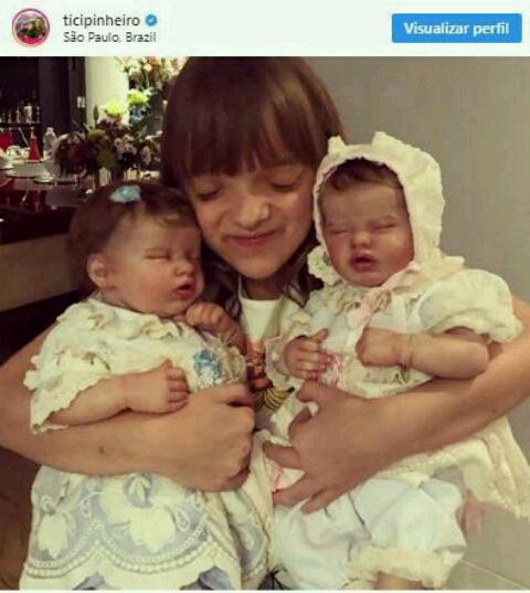 Em seu perfil no Instagram, Ticiane publicou uma foto onde a filha aparece com as duas bonecas conhecidas como “Reborn“.