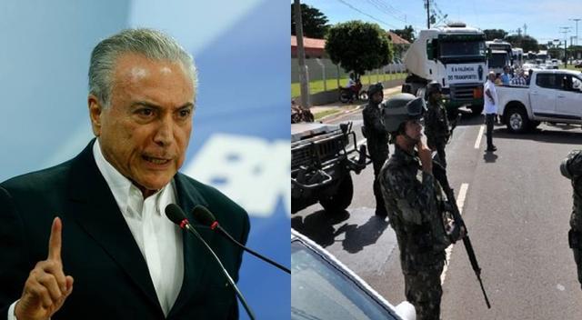 Durante pronunciamento há pouco, o presidente Michel Temer afirmou que acionou as forças federais de segurança para conter os bloqueios, mas ainda não esclareceu sobre quais forças seriam utilizadas. Contudo, o Comandante do Exército, general Eduardo Villas Bôas, determinou a imediata mobilização de todo o efetivo da força para ser empregada na liberação de rodovias e atitude afetará todo o país.