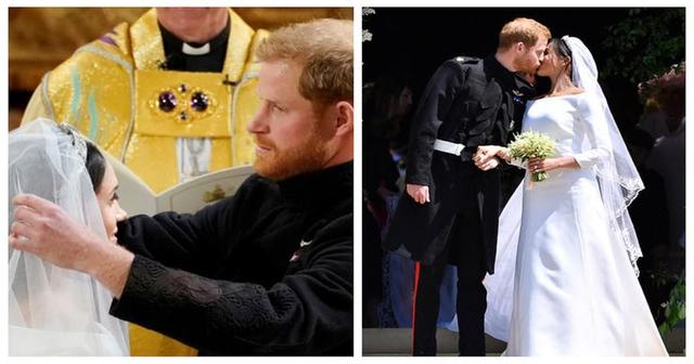 So it wouldn't come as a surprise then that many of their royal wedding photos are tender and heartwarming. When Harry saw his bride walking down the aisle, it seemed as if he had to take a moment to catch his breath. When she finally reached him, he ever so gently lifted her veil and brushed it back. After the wedding, as the couple made their way outside, the couple held hands (as they did throughout most of the ceremony) and Harry leaned in for a sweet kiss which had onlookers cheering with delight.