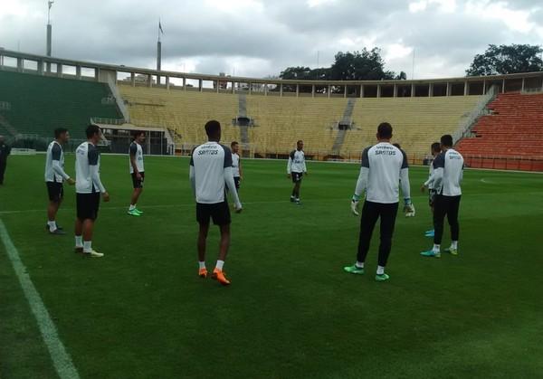 O Santos treinou no Pacaembu neste sábado e encerrou a preparação para o clássico de domingo contra o São Paulo, às 16h (de Brasília), no Morumbi, pela sexta rodada do Campeonato Brasileiro.