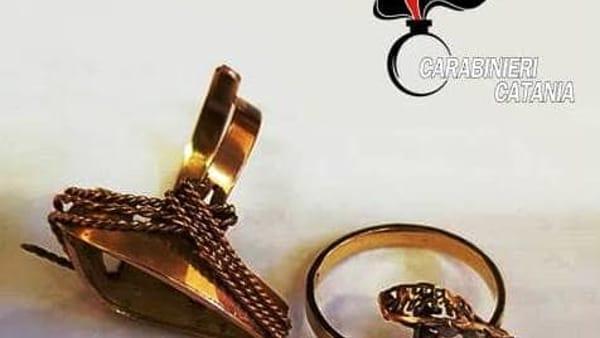 I carabinieri di Catania piazza Dante hanno denunciato un commerciante catanese di anni 32, già gravato da precedenti di polizia, e un pregiudicato catanese di anni 22, poiché ritenuti responsabili del concorso in ricettazione. Ieri sera, gli uomini del nucleo operativo nel pattugliare la zona di via Garibaldi hanno visto il 22enne, già noto per i suoi trascorsi penali, uscire da una gioielleria con fare sospetto. Bloccato e sottoposto a perquisizione personale, è stato trovato in possesso di 400 euro in contanti che, dai successivi accertamenti, gli erano stati consegnati dal titolare della oreficeria in cambio di oggetti in oro, risultati di provenienza illecita, per i quali il commerciante si era premurato di non registrarne l’entrata e le generalità del venditore. "I preziosi e il denaro sono stati sequestrati. Si pubblica la foto dei gioielli sequestrati, così da poter dare la possibilità alla vittime del furto di comprovarne la proprietà rivolgendosi nell’eventualità all’utenza telefonica 095/326666 del comando compagnia carabinieri di piazza Dante".