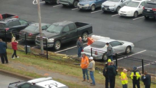 Others at the scene told CBS 11 there was a traffic collision near Bell Helicopter between a large pick-up truck and an industrial size truck that had a fork lift on the back. The large truck went off the road down a steep hill and through the fence of the parking lot.