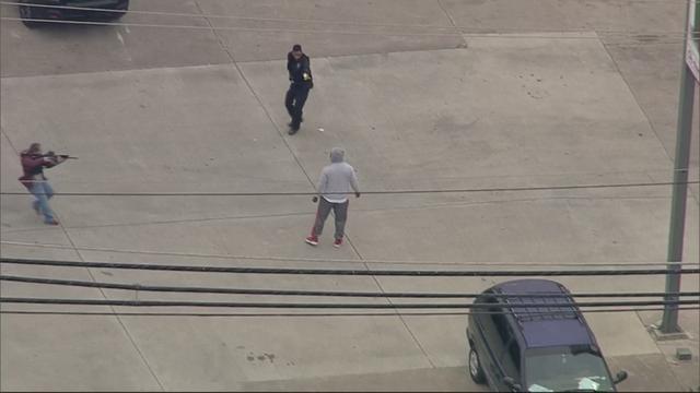 Police said they were watching news media feeds and saw that the suspect was located by television chopper cameras at a 7-Eleven store on Abrams Street.