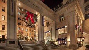 In the United States’ capital, the elegant Willard InterContinental’s lobby Christmas tree is decked out with the entire line of White House Christmas ornaments.