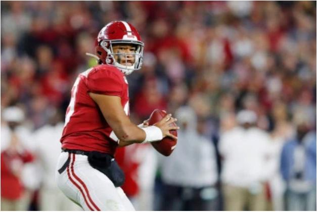 TUSCALOOSA, ALABAMA – NOVEMBER 09: Tua Tagovailoa #13 of the Alabama Crimson Tide looks to pass during the second half against the LSU Tigers in the game at Bryant-Denny Stadium on November 09, 2019 in Tuscaloosa, Alabama. (Photo by Kevin C. Cox/Getty Images)