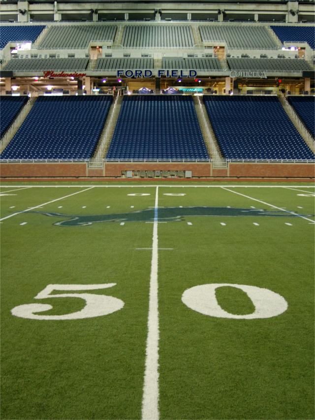 Ford Field, home to the Detroit Lions is located Downtown Detroit on Brush Street next to Comerica Park and down the street from Little Caesars Arena.