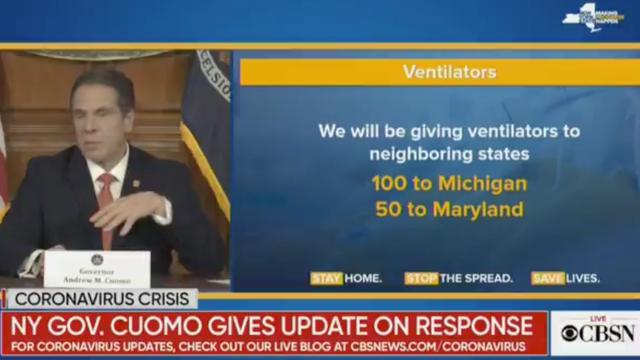 New York will be sending ventilators to other states now that its coronavirus response is stabilizing. 100 will go to Michigan and 50 to Maryland.