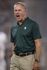 TEMPE, AZ – SEPTEMBER 08: Head coach Mark Dantonio of the Michigan State Spartans reacts during warm ups to the college football game against the Arizona State Sun Devils at Sun Devil Stadium on September 8, 2018 in Tempe, Arizona. (Photo by Christian Petersen/Getty Images)