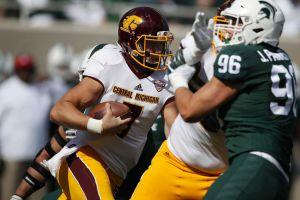 EAST LANSING, MI – SEPTEMBER 29: Tommy Lazzaro #7 of the Central Michigan Chippewas throws a first half pass while playign the Michigan State Spartans at Spartan Stadium on September 29, 2018 in East Lansing, Michigan. (Photo by Gregory Shamus/Getty Images)