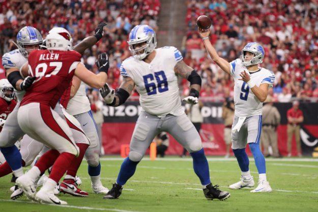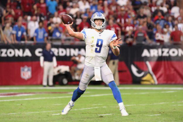 GLENDALE, ARIZONA – SEPTEMBER 08: Quarterback Matthew Stafford #9 of the Detroit Lions throws a pass during the second half of the NFL game against the Arizona Cardinals at State Farm Stadium on September 08, 2019 in Glendale, Arizona. The Lions and Cardinals tied 27-27. (Photo by Christian Petersen/Getty Images)