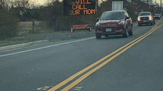 A flashing sign posted in a 25 mph zone starts off with an expected and easy-to-ignore message: “Slow down or…” Then, it switches to: “…we will call your mom.”