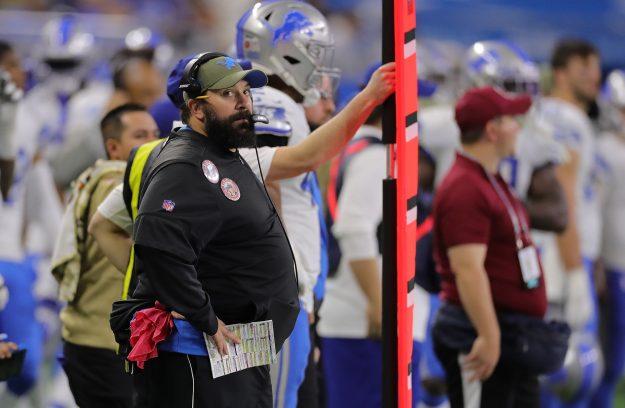 DETROIT, MI – NOVEMBER 17: Head coach Matt Patricia of the Detroit Lions looks at the video board late in the fourth quarter of the game against the Dallas Cowboys at Ford Field on November 17, 2019 in Detroit, Michigan. Dallas defeated Detroit 35-27. (Photo by Leon Halip/Getty Images)