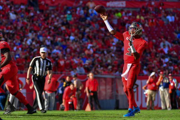 TAMPA, FLORIDA – DECEMBER 08: Jameis Winston #3 of the Tampa Bay Buccaneers throws a touchdown pass to Justin Watson #17 during the third quarter of a football game against the Indianapolis Colts at Raymond James Stadium on December 08, 2019 in Tampa, Florida. (Photo by Julio Aguilar/Getty Images)