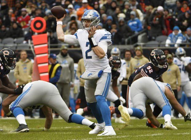CHICAGO, ILLINOIS – NOVEMBER 10: Jeff Driskel #2 of the Detroit Lions passes against the Chicago Bears during the first quarter at Soldier Field on November 10, 2019 in Chicago, Illinois. (Photo by David Banks/Getty Images)