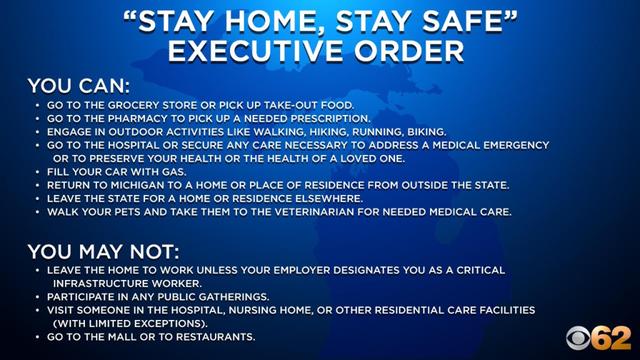 All Michiganders must stay in their homes unless they’re a part of that critical infrastructure workforce, engaged in an outdoor activity or performing tasks necessary to the health and safety of themselves or their family, like going to the hospital or grocery store.