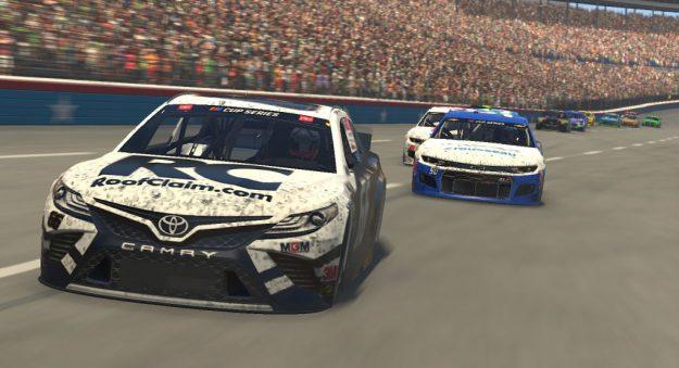 FORT WORTH, TEXAS – MARCH 29: Timmy Hill, driver of the #66 Roofclaim.com Totota, races during the eNASCAR iRacing Pro Invitational Series Race – O’Reilly Auto Parts 125 at virtual Texas Motor Speedway on March 29, 2020 in Fort Worth, Texas. (Photo by Chris Graythen/Getty Images)