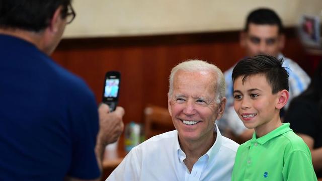 Democratic party candidate Joe Biden is given a rosary while meeting with patrons, alongside Hilda Solis (L), Former United States Secretary of Labor and a member of the Los Angeles County Board of Supervisors, of Tamales Lilianas restaurant in Los Angeles, California on July 19, 2019. – Democrats are gearing up for their second primary debates ahead of the 2020 election, with a rematch looming between frontrunner Joe Biden and first round star Kamala Harris. (Photo by Frederic J. BROWN / AFP) (Photo credit should read FREDERIC J. BROWN/AFP/Getty Images)
