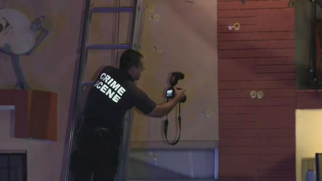 Miami police say more than a dozen shots were fired, multiple rounds struck the concrete wall of the apartment building and the windows of two units.
